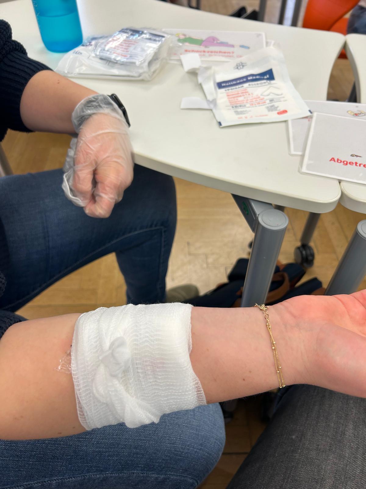An einer Schule ist immer viel los, und wir Lehrkräfte sind unter anderem auch als Ersthelferinnen häufig gefordert. Daher frischten wir an zwei Nachmittagen unser Wissen zu diesem wichtigen Thema auf. Monja Schiller von den Johannitern erklärte anhand vieler praktischer Beispiele, wie wir in bestimmten Situationen agieren sollen. So wiederholten wir das Anlegen eines Druckverbandes, besprachen verschiedene Verletzungsszenarien, bildeten uns in Pflasterkunde fort und konnten unsere Fragen einbringen. Gerade bei der Arbeit mit Kindern ist ein ruhiger und unaufgeregter Umgang mit Verletzungen wichtig – da half die Auffrischung unseres Wissens allemal!